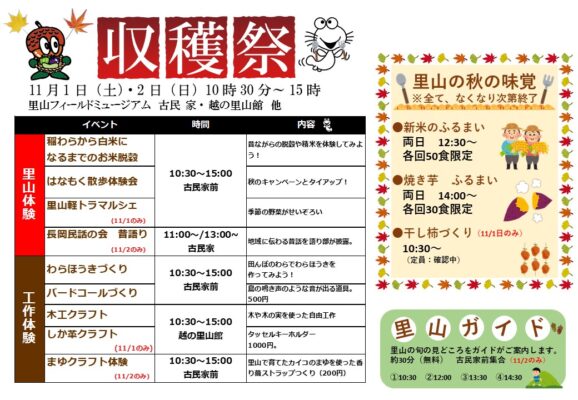 | 場所 | 里山フィールドミュージアム 10月:古民家(集合) 11月:えちごにあん(集合) |