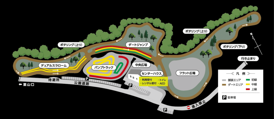 - 公園内の自転車利用は里山口ゲート~ながおかアーバンバイクパークコース間のみ可能です。