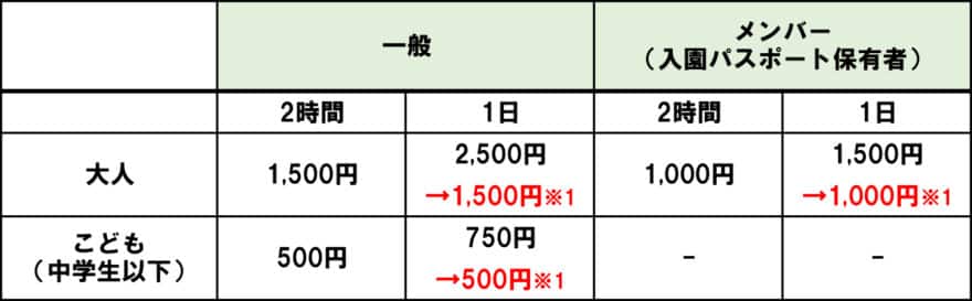 ※1 令和7年10月~11月の2ヶ月間は、オープン特別価格として2時間の料金で1日ご利用いただけます。